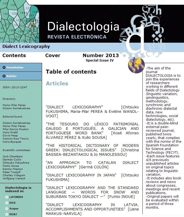 Dialectologia, special issue IV: Dialect Lexicography. Revista electrònica