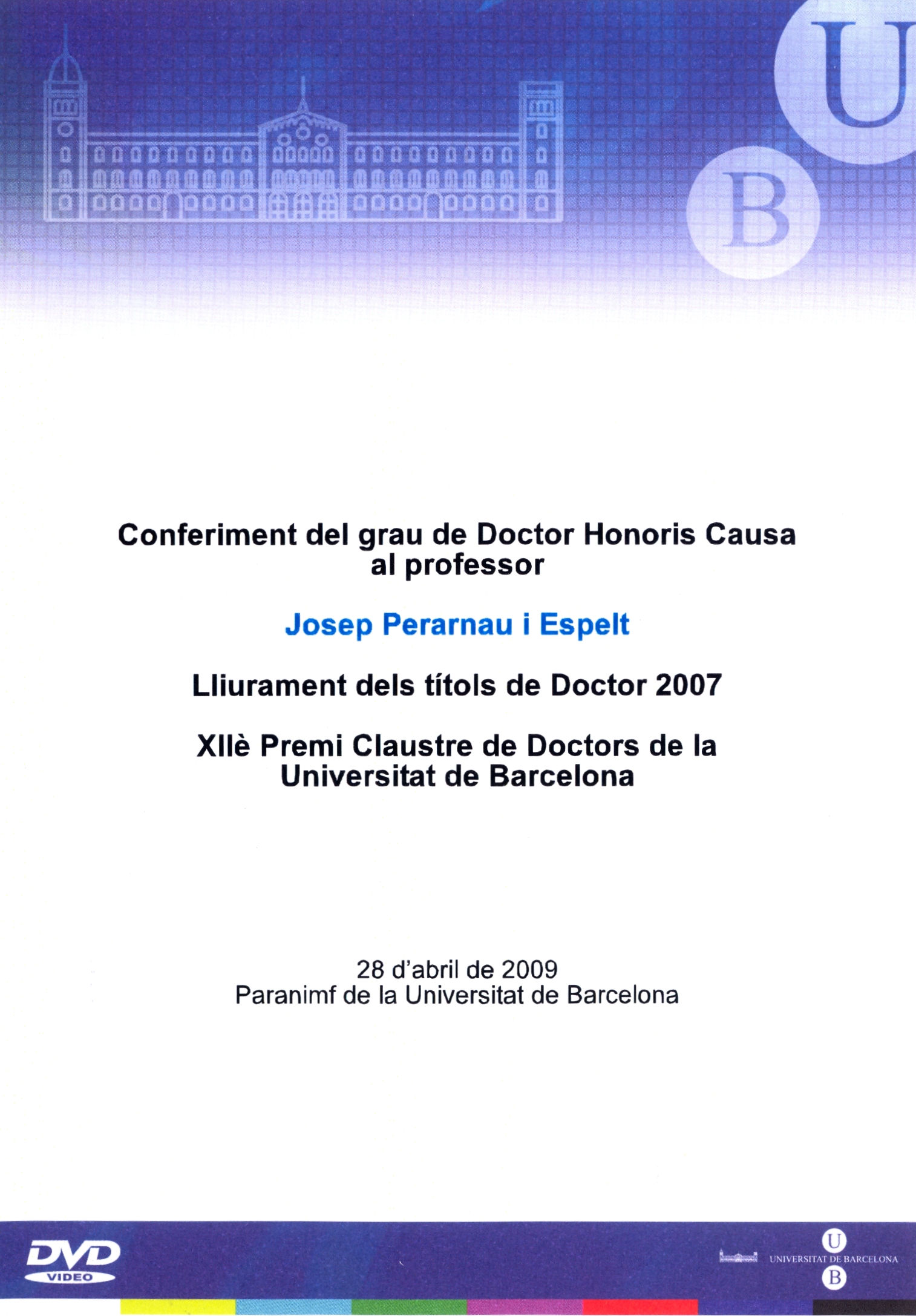 DVD Lliurament de Títols Doctors per la UB 2007 i Acte d’investidura Doctor Honoris Causa al professor Josep Perarnau i Espelt