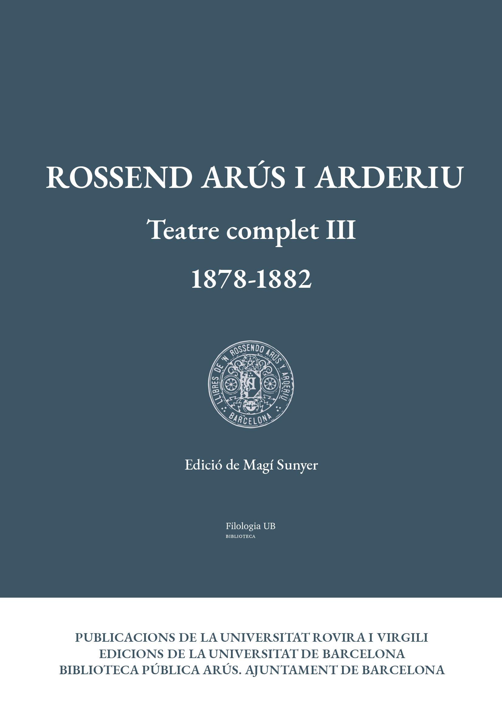 L’obra completa de Rossend Arús i Arderiu (1845-1891), dramaturg popular, republicà, catalanista, lliurepensador i maçó, integra més de cinquanta peces dramàtiques i constitueix la col·lecció més extensa de teatre vuitcentista a l’abast del lector actual. De les seves peces, que tenen una dimensió política, sobresurten els drames realistes contemporanis i en prosa, en què l’autor va ser pioner. Aquest tercer volum, amb les obres escrites entre el 1878 i el 1882, completa els dos anteriors. El primer de tots inclou un estudi aprofundit de Magí Sunyer, professor titular del Departament de Filologia Catalana de la Universitat Rovira i Virgili.