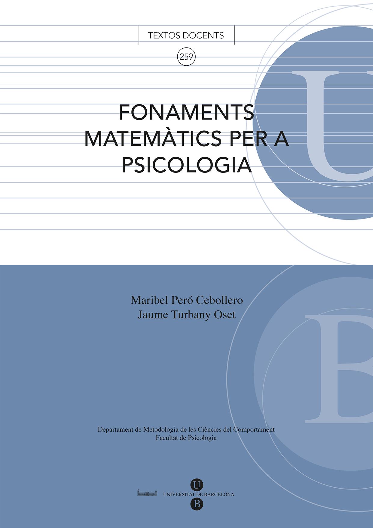 Aquesta obra Fonaments matemàtics per a Psicologia, pretén mostrar alguns dels principis bàsics sobre els que es fonamenta l’anàlisi estadística de les dades.