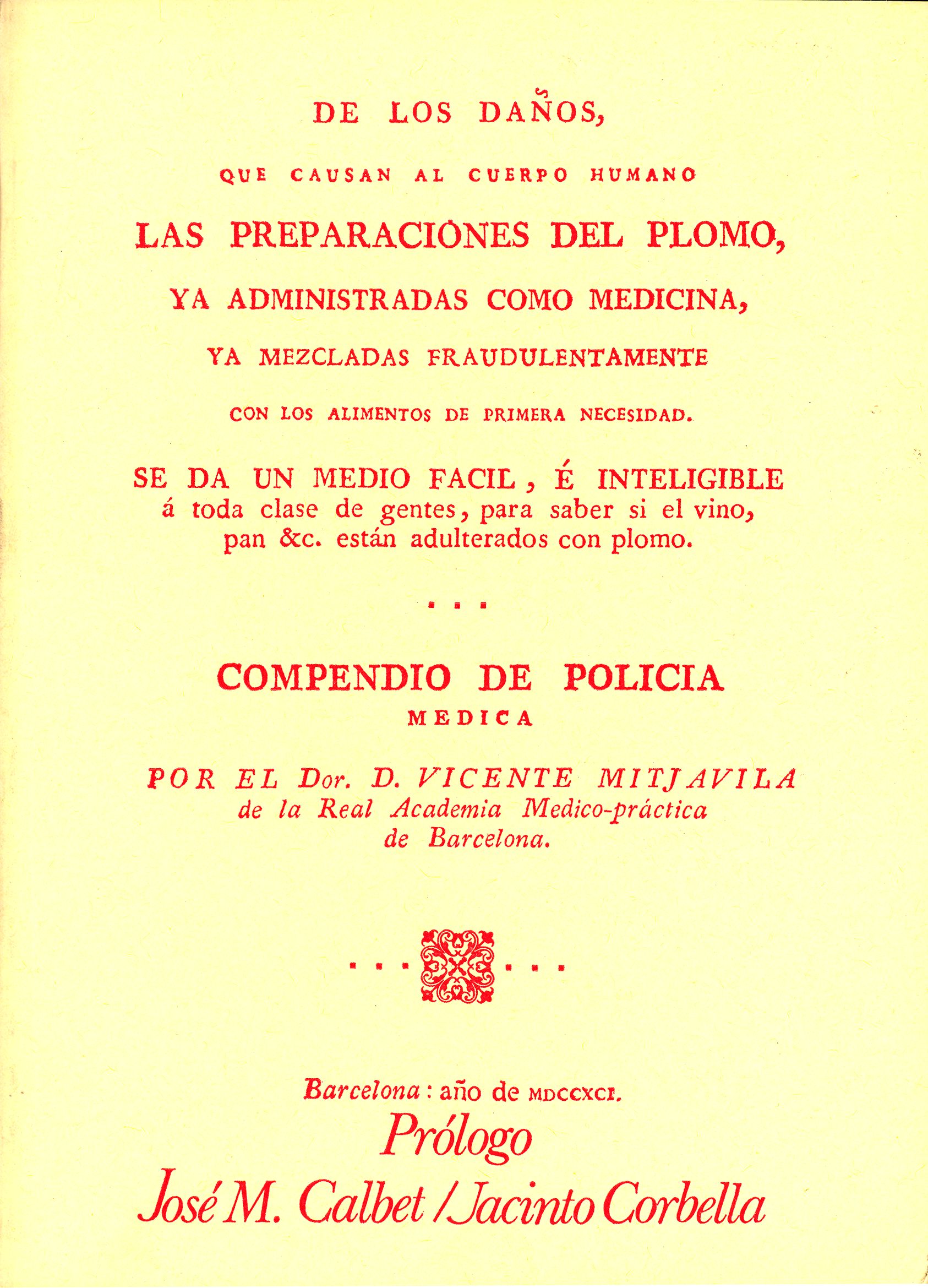 En ésta obra se recogen dos trabajos de Vicente Mitjavila (1759-1805) que ilustran de modo muy claro las preocupaciones clínicas, científicas y sociales de una gran parte de los médicos catalanes de la época de la "Renaixença" científica. De la obra (con un estudio introductorio de los Dres. Jacinto Corbella y José María Calbert) se realizó una edición en símil piel y otra en rústica.