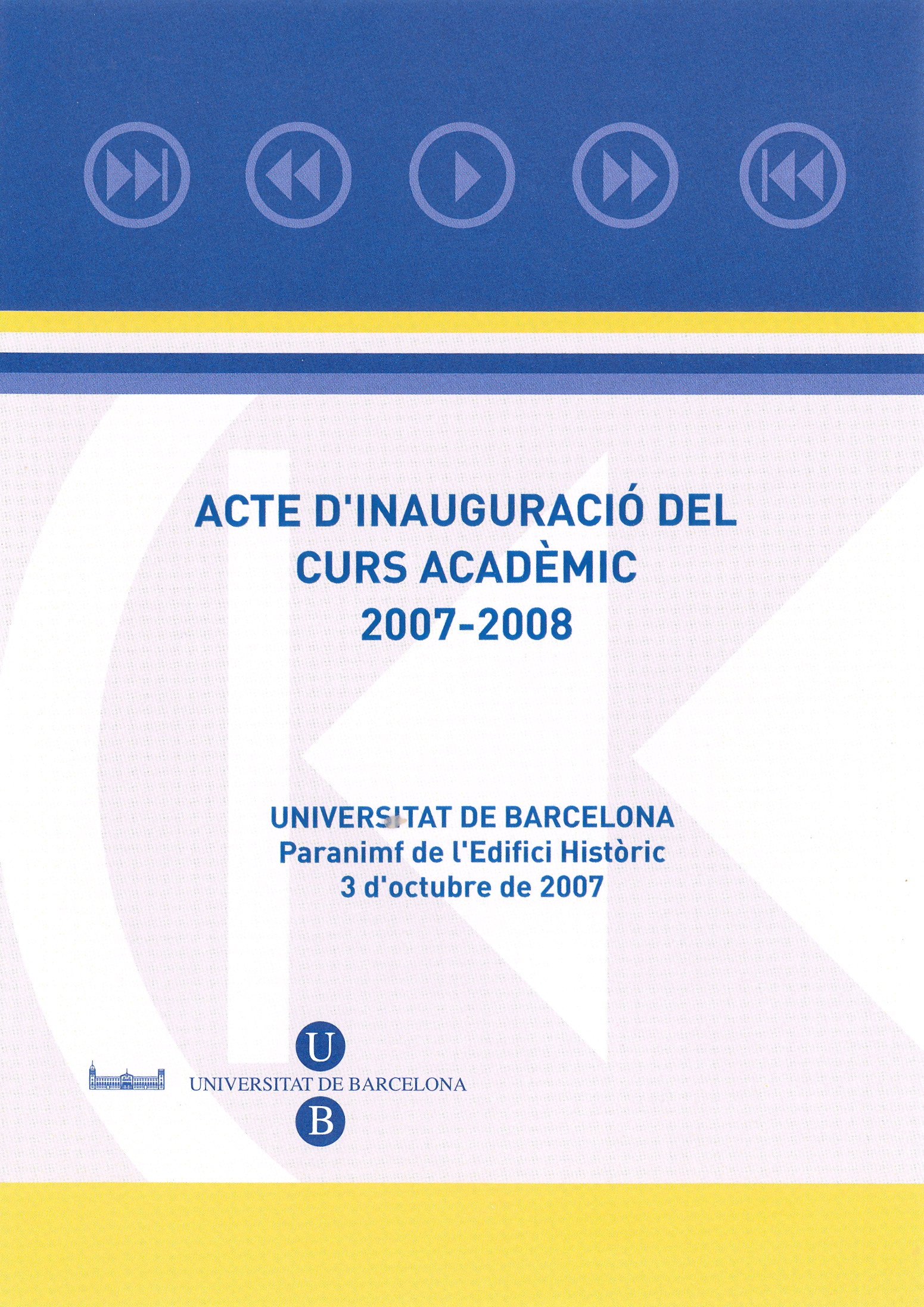 DVD Acte d’inauguració del curs acadèmic 2007-2008 (Paranimf de l’Edifici Històric 3 d’octubre del 2007)